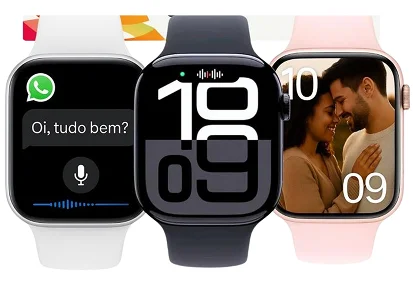 Os modelos com microfone e alto-falante integrados permitem fazer e atender chamadas Bluetooth diretamente pelo relógio — desde que o celular esteja pareado.