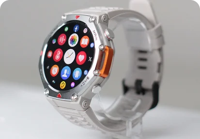Tela HD IPS 1.45” de alta definição, estrutura reforçada e recursos inteligentes para acompanhar qualquer ritmo.